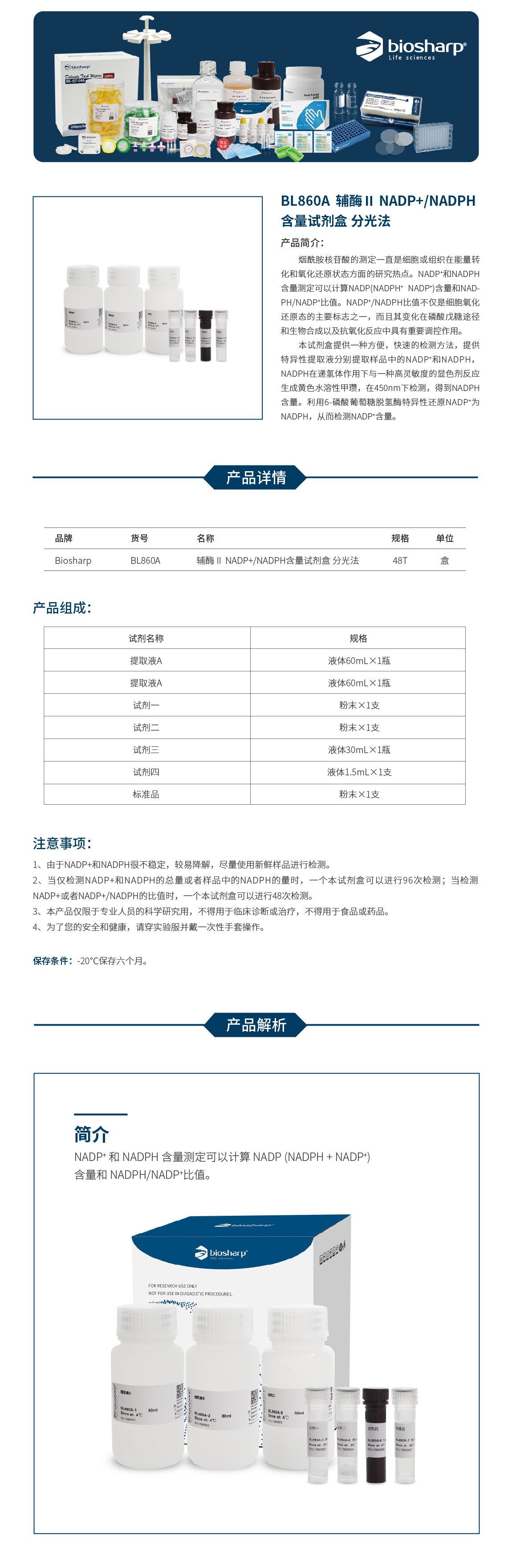 BL860A 辅酶Ⅱ NADP+/NADPH含量试剂盒 分光法